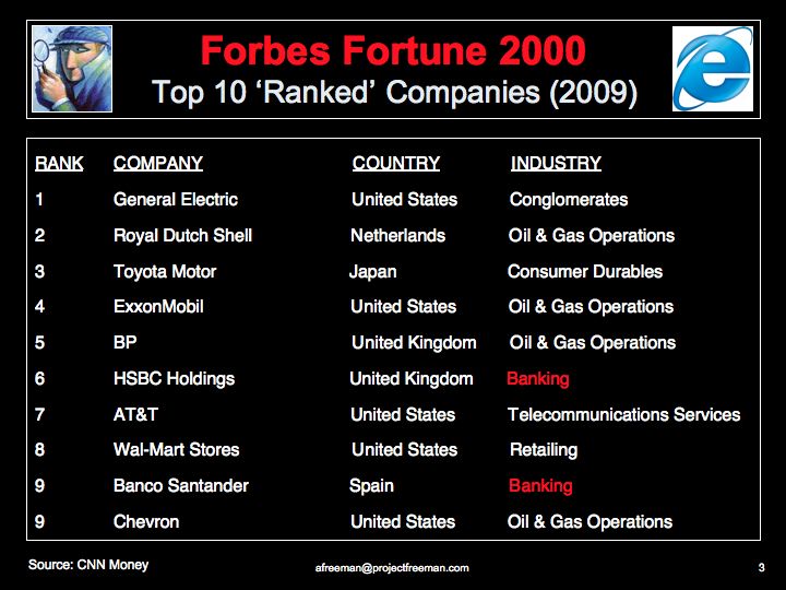 When you look at the ranking Forbes gave to their Fortune 2000 companies in 2009 there were hardly any banks at the top