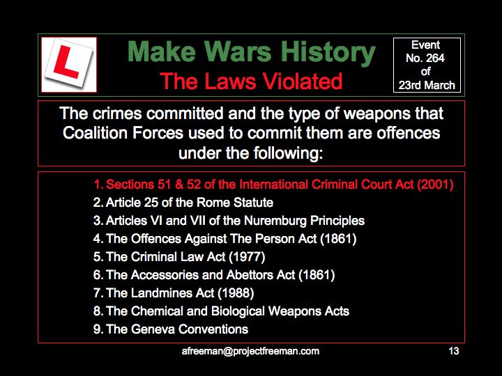 Click here to see the full 'Crime Report' (downloaded from the Make Wars History web site)